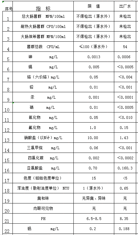 2020年4月出廠水檢測表
